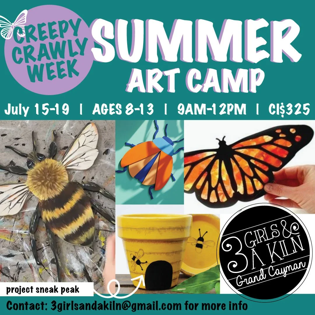 We are excited to announce our Creepy Crawly Camp inviting youth aged 8-13 to join us to Cayman creativity camp with a whole week of themed crafts in our waterfront studio starting July 15th-19th!