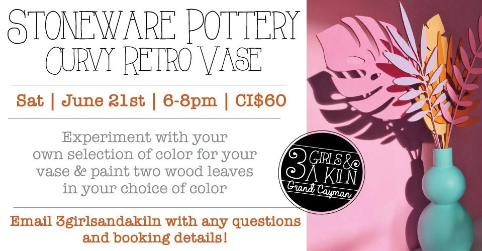 Included in the class: CI$60 covers all materials: stoneware vase, 2 wooden leaves and all glaze, paint and instruction.