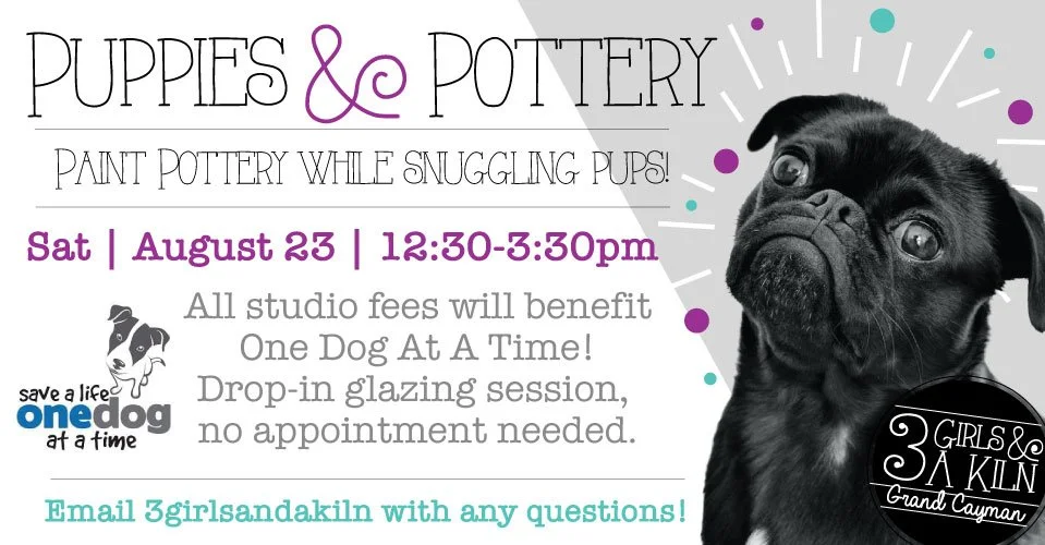 Pricing: Studio fee of CI$10 for adults or CI$8 for kids plus the cost of the ceramic piece (most items vary between about CI$15 - $25). All Studio Fees will be donated to One Dog At a Time during the event.