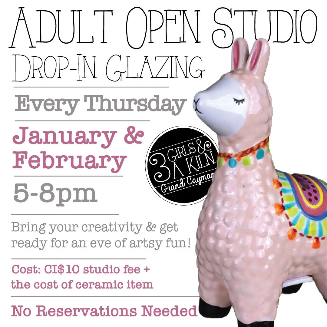 There is no need to book your space ahead of time, but email us at 3girlsandakiln@gmail.com if you would like to reserve space for a drop-in glazing session on another day. There is no appointment needed on the Thursday drop-in sessions.